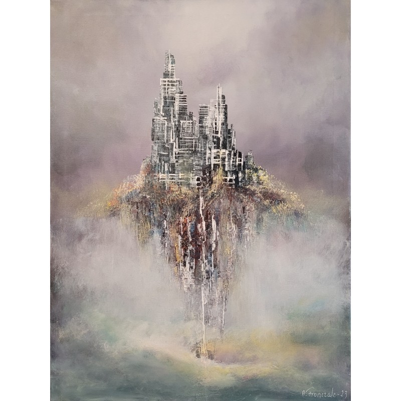 Obraz na płótnie Andrzeja Fronczaka pt. "W zawieszeniu X" to niesamowite surrealistyczne dzieło.